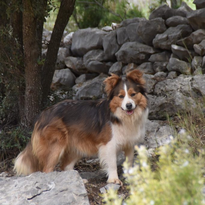 Bonita es una preciosa Border Collie de color Sable Azul que hace sonreir a quien quiera que pase por su camino.